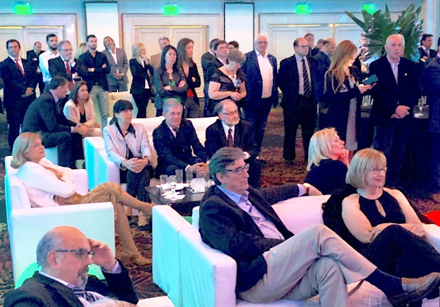 Parte de invitados en cena de CAMTUR en el Victoria Plaza Hotel (Radisson de Montevideo, foto Ma Elisa Fernández) |